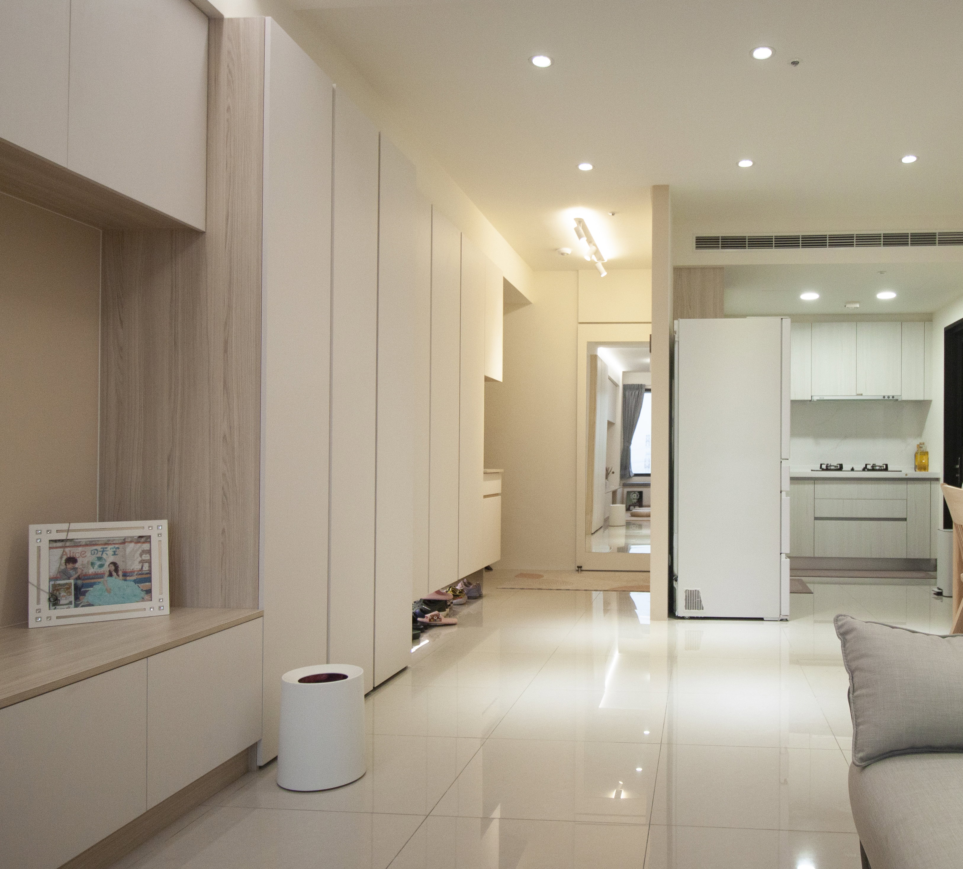 這個溫馨的小屋展現了設計師獨特的視角和專業技能,每一個細節都經過精心設計,營造出一種舒適、時尚的居住環境。設計師選擇了柔和的色彩和自然的材料,以打造一個和諧的空間。從客廳到臥室,跳色的牆壁和木質的櫃體營造出清新明亮的氛圍,突顯了室內的通透感和寬敞感。